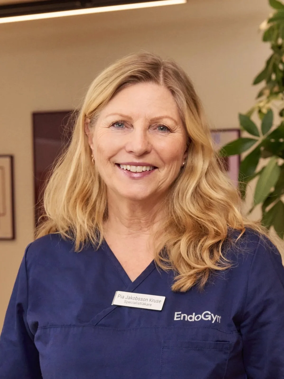Pia Jakobsson Kruse är specialist i gynekologi och obstetrik på EndoGyn med särskild kompetens inom barn- och ungdomsgynekologi. Hon var tidigare medicinskt ansvarig överläkare på ungdomsenheten vid Sachsska barn- och ungdomssjukhuset vid Södersjukhuset Stockholm. Pia har lång erfarenhet av att behandla endometrios och är sakkunnig på Barnendometriosfonden.